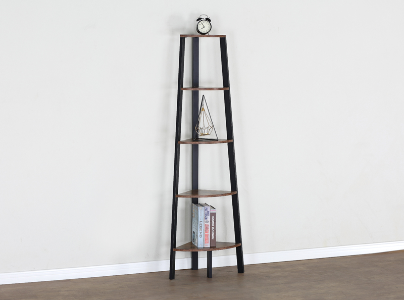 This 5 tier tall bookshelf with a 90°right angle, fits every corner such as living room,kitchen, dinning room,balcony, bath room, entry way and so on. The open shelf unit can play a role as a corner shelf, exhibition display rack , CD rack, plant standing perfectly.